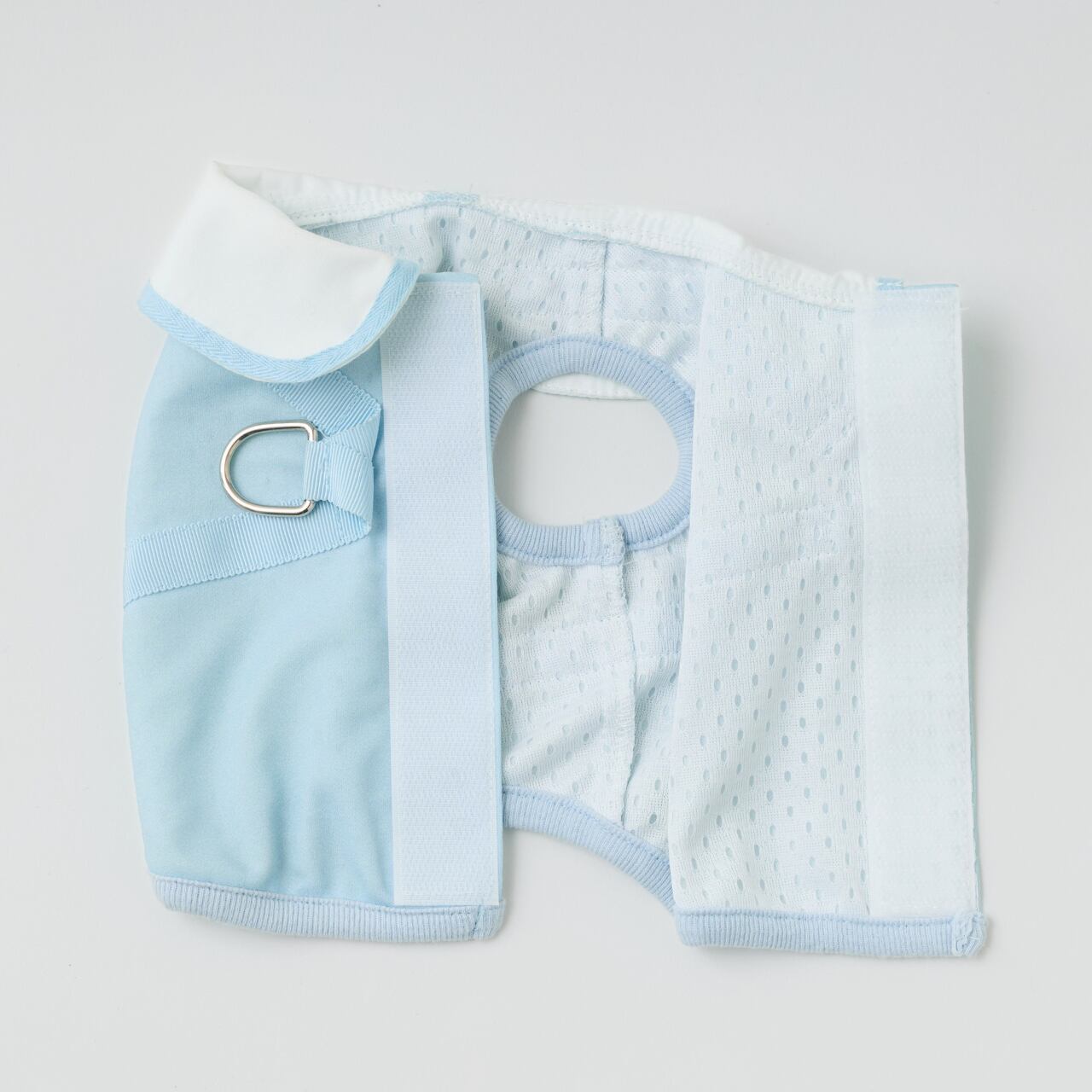 表地・裏地ともに高機能COOL素材プレサーモ®︎C-25を使用した冷感ハーネスは、夏のおでかけにぴったりです。